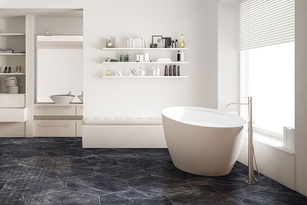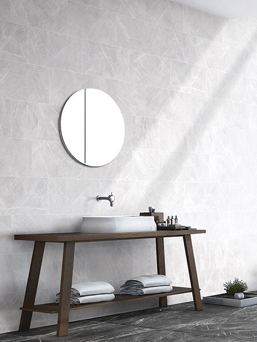 Imperial Stone is an American-made porcelain tile series offering one of the most unique stone tile looks for today's modern space. This color body porcelain tile series emphasizes an exciting white stone vein across five elegant colors with consistent tone range. Elegant white and grey tile options contrast with deep brown and black tile offerings across honed or semi-polished tile finishes. Imperial Stone is an extensive floor tile series that also comes with beautiful mosaic tile options to create unique designs for any residential or light commercial project.