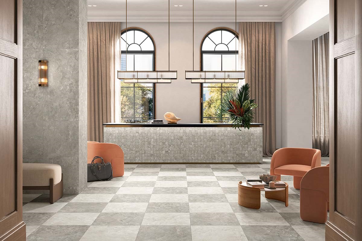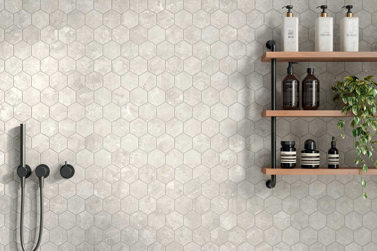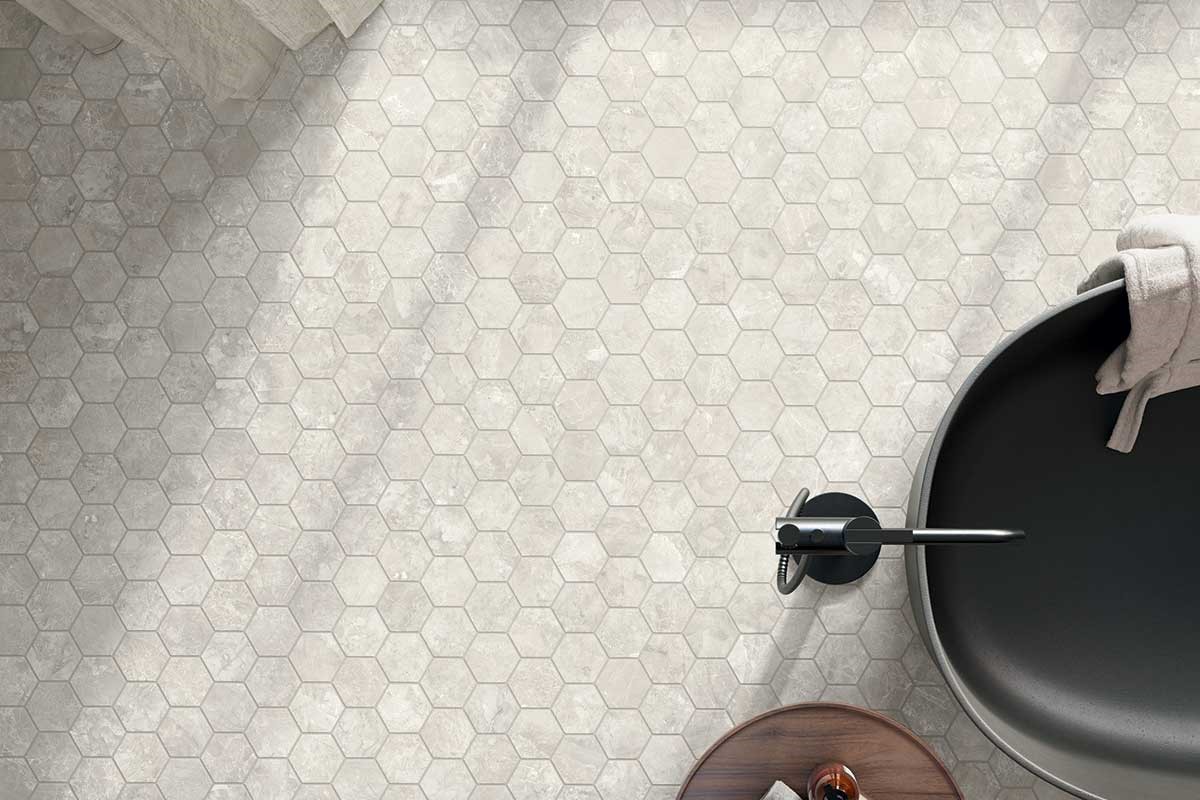 Select porcelain tile is an American-made rectified color body porcelain with an inspiring aesthetic: A refined fusion of three elegant marble stones artfully curated in two modern colorways. These six timeless stone looks - Dolomite White, Dolomite Gray, Savoy White, Savoy Gray, Vanta White and Vanta Gray - are offered in multiple field tile formats 12" x 24", 24" x 48" and 6" x 24" rectangle or 24" x 24" square. The Select marble look series reflects elegance, contemporaneity, rich movement, subtle variation and high design. Even more captivating looks are achieved with a versatile mosaic suite: A traditional 2” x 2" square mosaic tile, a 3” Hexagon mosaic tile, or a stunning Basketweave mosaic. Select is suitable for all residential and commercial applications. For rectified tiles, we recommend a minimum grout joint of at least 1/8”.