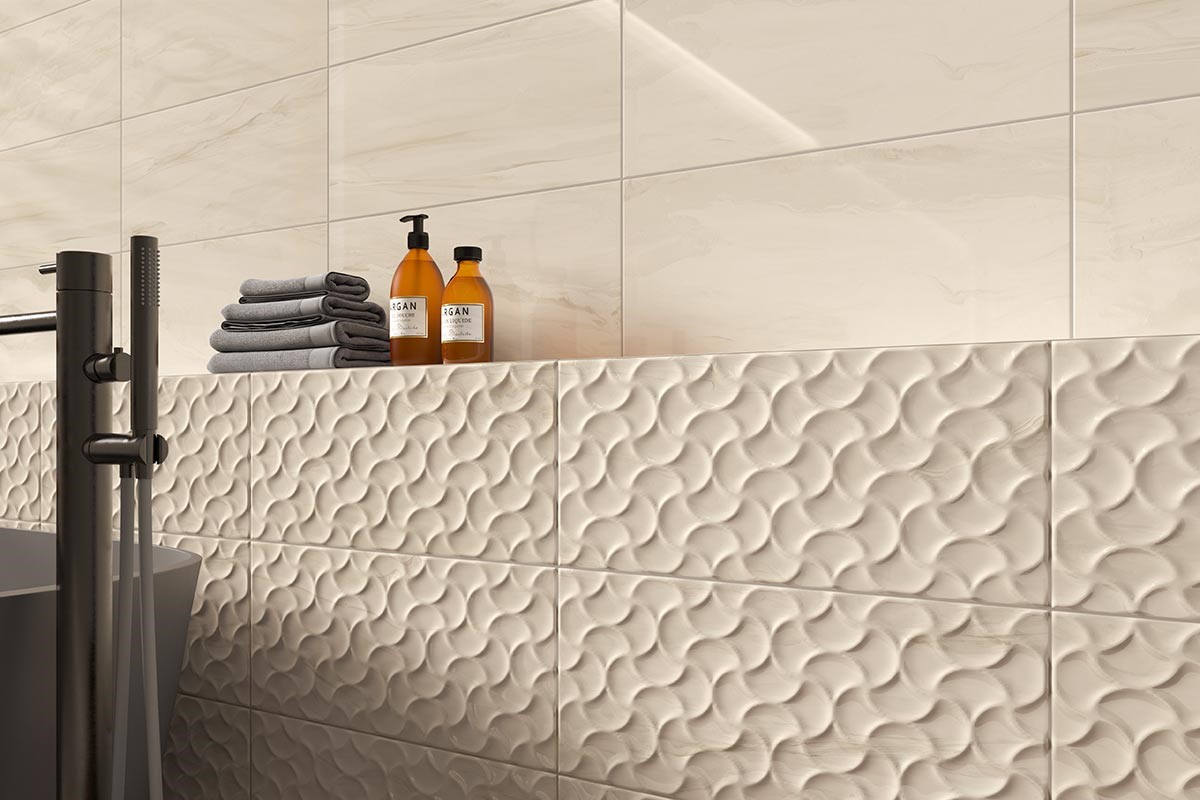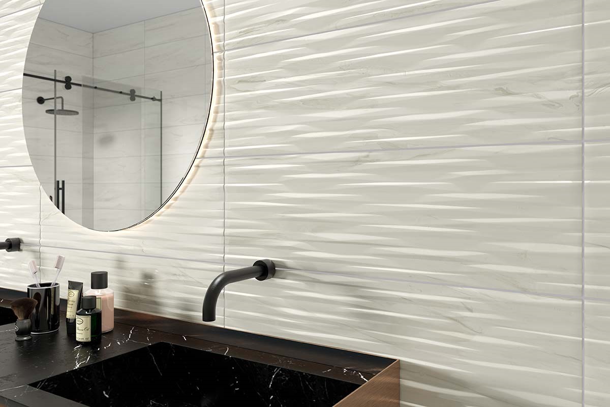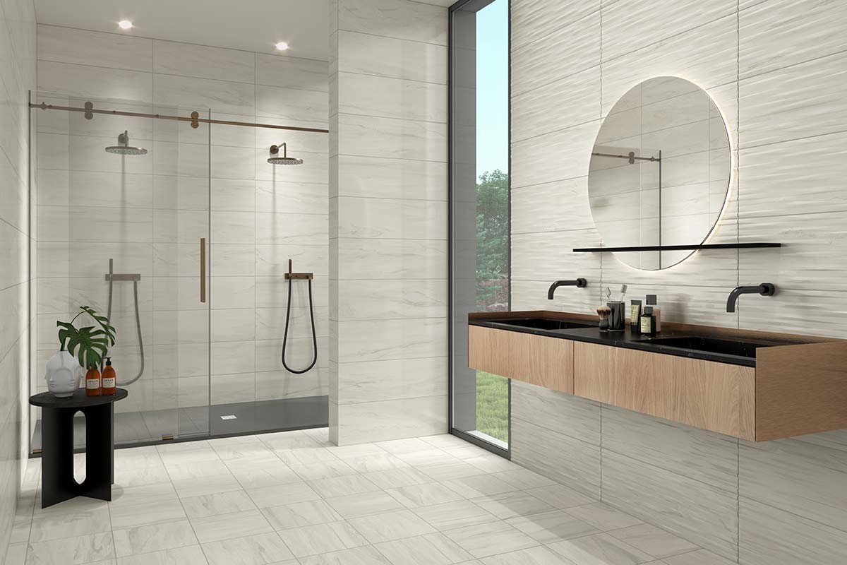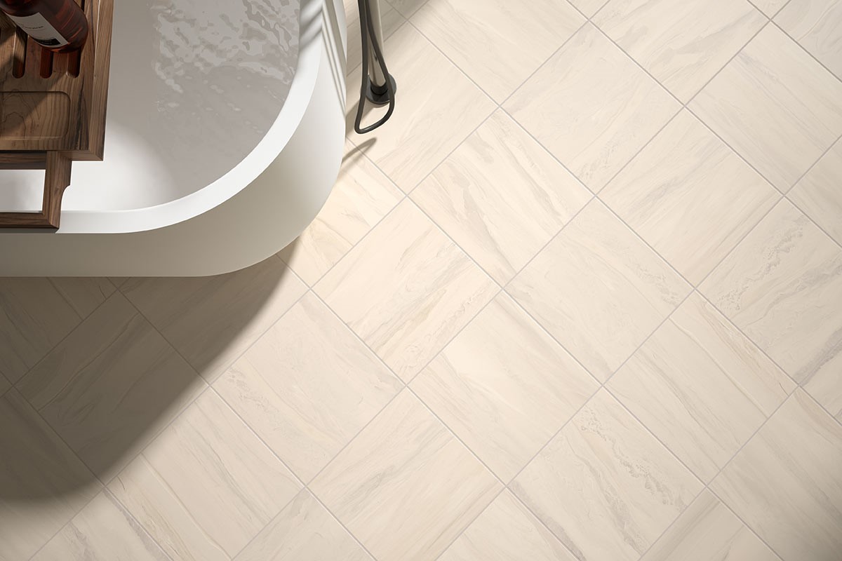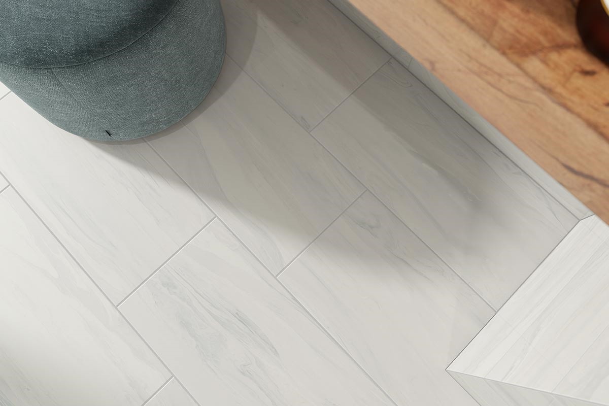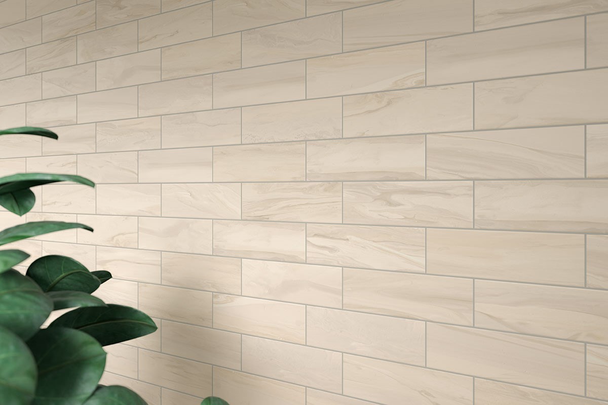 Serene porcelain and ceramic tile collection reveals a unique, ethereal layering of muted colors on a light background. With singular design concepts reminiscent of marble stone veining, painted surface movement or mixed media, the Serene series is available in five colorways: Beige, Blue, Green, Grey and White. Porcelain tile formats include 4” x 12”, 12” x 12” and 12” x 24” matte. Ceramic tile formats include 10” x 22” and 10” x 30” glossy along with stunning decorative tiles ‘Shell’ and ‘Razor’. The series is finished with a porcelain 2" Hexagon mesh-mounted mosaic and glossy trim. Serene matte is suitable for all applications. For pressed tiles, we recommend a grout joint of at least 3/16”.