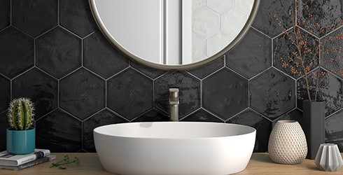 Paint is a Spanish floor tile and wall tile series that provides a broad range of highly saturated colorways. This appealing high glossy tile reflects the look of freshly brushed painted surfaces. Seven colorways explore the chromatic tile look on a 3” x 12” ceramic wall tile: White (‘Bianco’), Grey (‘Grigio’), Cobalt Blue, Black (‘Nero’), Red (‘Bordeaux’), Teal (‘Aquamarine’) and Turmeric Yellow (‘Kaki’). Floor tile options include a 9” x 9” or an 8” Hexagon floor-rated ceramic tile in White, Grey, Blue and Black. Decorative tile mix is available in the 8" Hexagon colors and the 3" x 12" ceramic wall tile in White, Grey and Blue. Paint White and Grey in the 9” x 9” and 8” Hexagon are rated for all residential and light commercial applications, while all other 9” x 9” and 8” Hexagon colors are rated for all residential applications. We recommend a minimum grout joint of no less than 3/16” for pressed tiles.