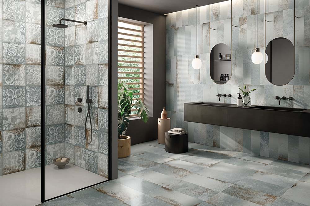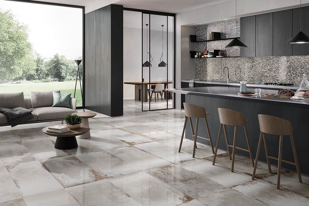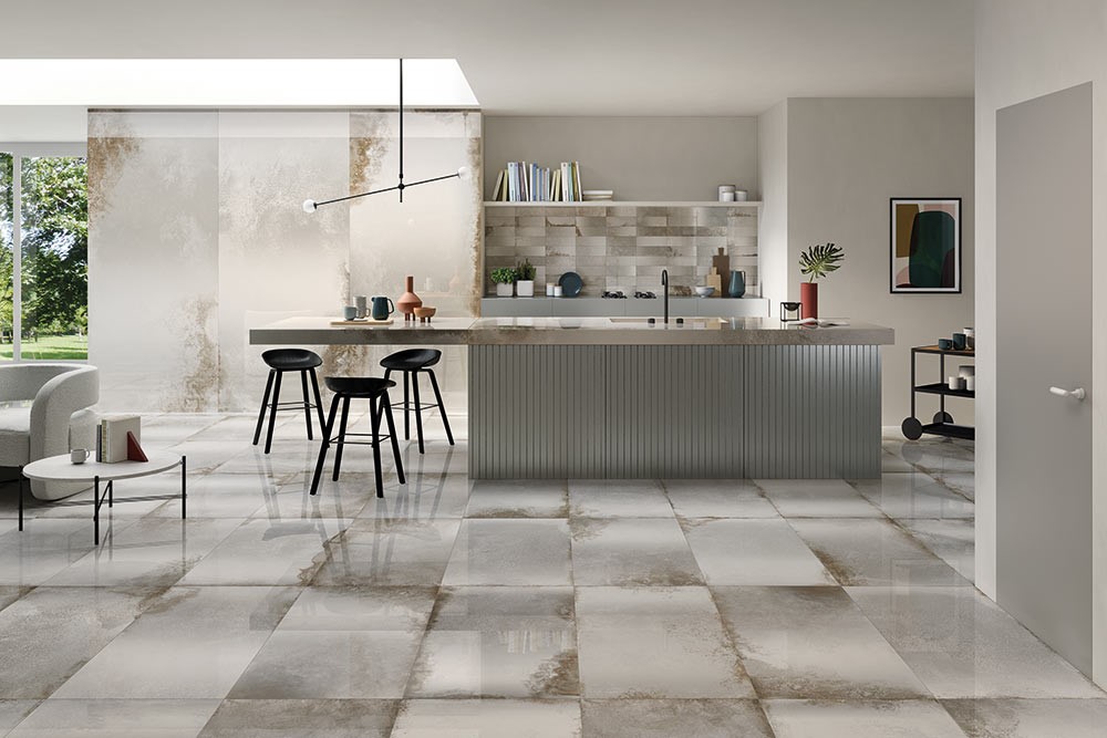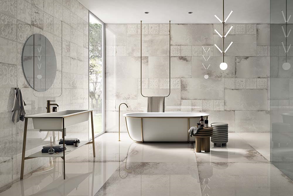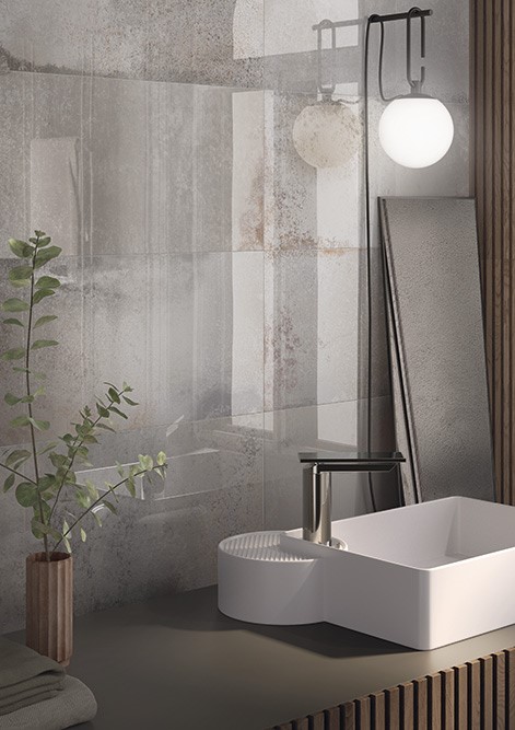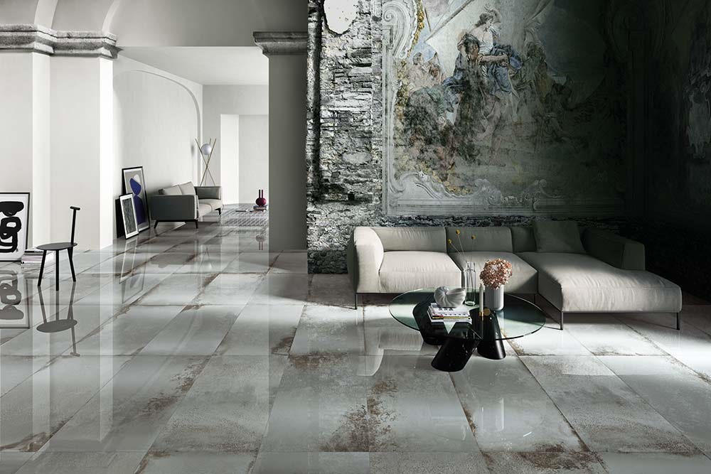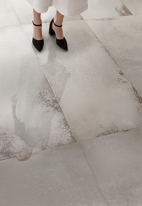 Reflections is a glazed Italian porcelain tile that imitates antiqued mirror glass tiles, alongside transformative contemporary tile effects such as oxidization. The series comes in 4" x 12" and 12” x 24” rectangular tile formats in both polished tile and matte tile finishes. A 2” x 2” mesh-mounted mosaic tile is also available. Reflections porcelain tile offers four bold colorways: White (Perla), Grey (Argento), Cobalt Blue (Zaffiro) and Aqua Green (Topazio). Reflections Perla and Argento are rated PEI 5 for all Residential and Commercial applications. Zaffiro and Topazio are rated PEI 4 for all Residential and Light Commercial applications. With Reflections, your room presents a striking visual impact with a tactile effect – you will want to touch the tile to get a sense of its depth!