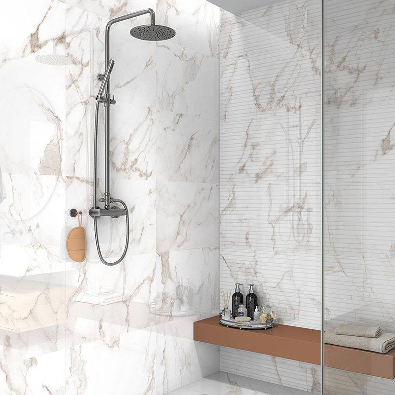 With multiple stylish floor and wall tile formats, Portico makes it easy to personalize a modern space. The 12” x 24” and 13” x 13” porcelain tiles are perfect for creating open floor layouts in a wide range of unique patterns. For wall applications, Portico offers a 13” x 22” ceramic wall tile, and for added visual interest a 13”x 22” Nazca decorative wall tile featuring an intriguing linear pattern with texture and sophistication. When working with smaller areas or aiming to highlight a specific space, Portico’s Hexagon and Hoja mosaics offer a striking solution. These unique shapes are perfect for shower floors, backsplashes, accent walls, or other features, bringing the timeless elegance of marble along with added depth and character.